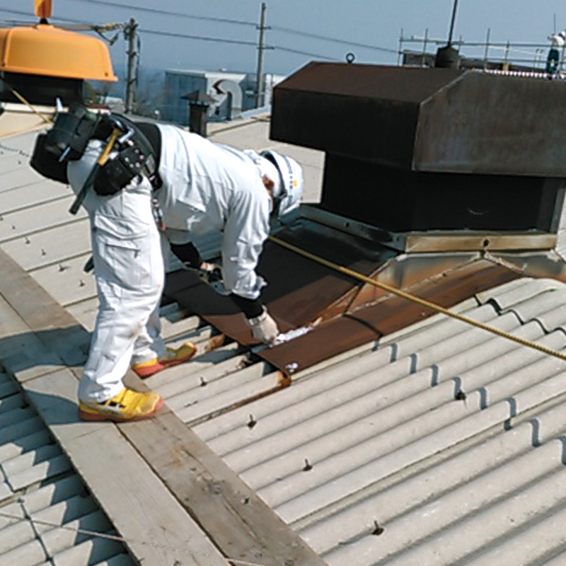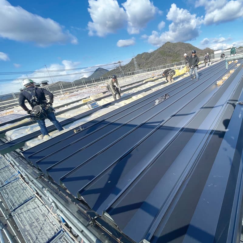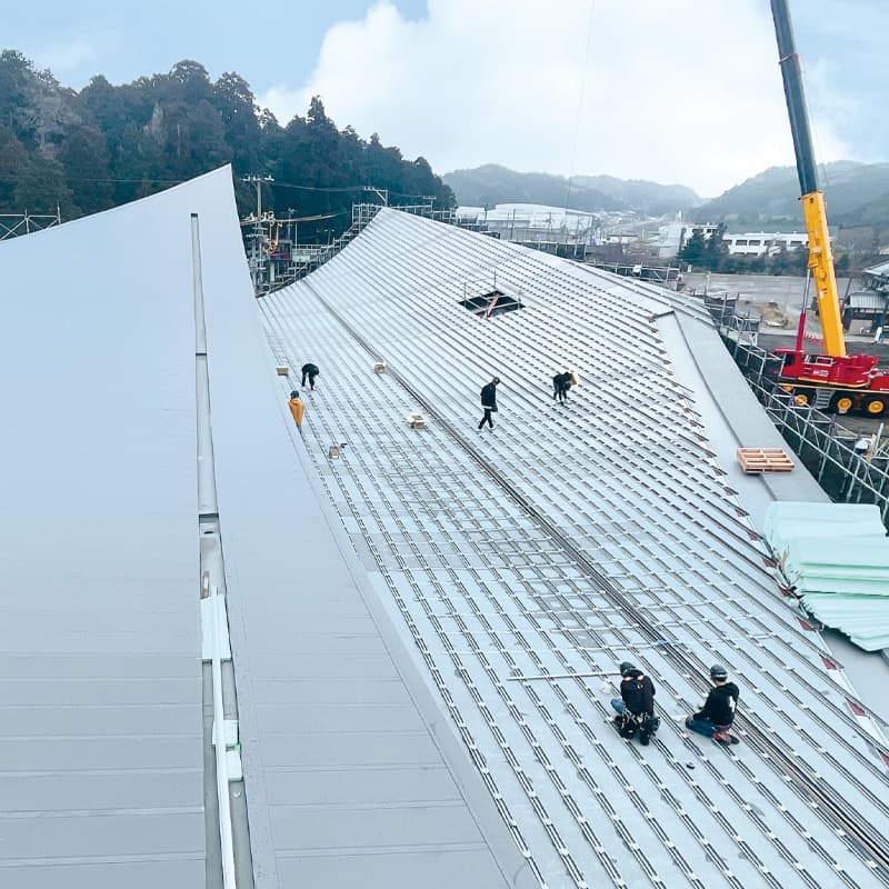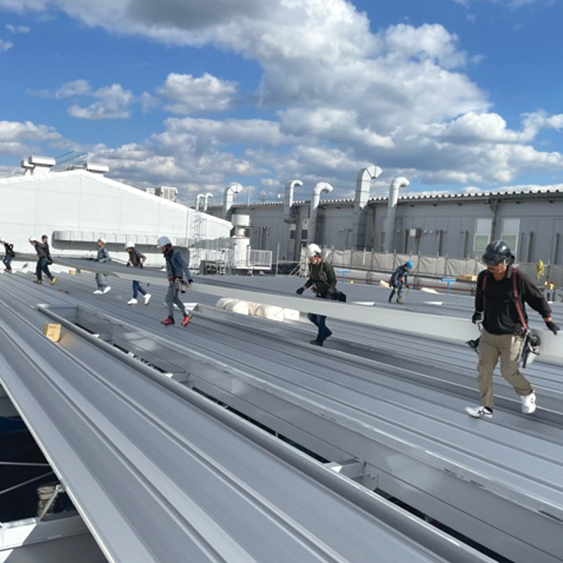公共施設 ・ 商業施設 ・ 工場などの大型建築物の屋根 ・ 外壁工事、 住宅の屋根 ・ 外壁工事、 付随してトップライト ・ ルーフファンの工事を主に県内建設会社より受注いただき20年。